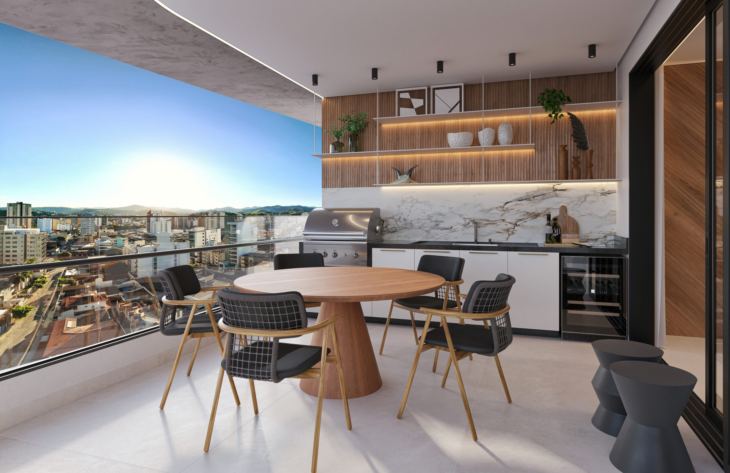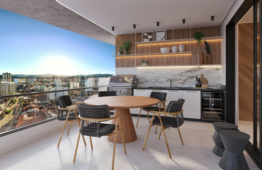 Varanda gourmet com churrasqueira a gás