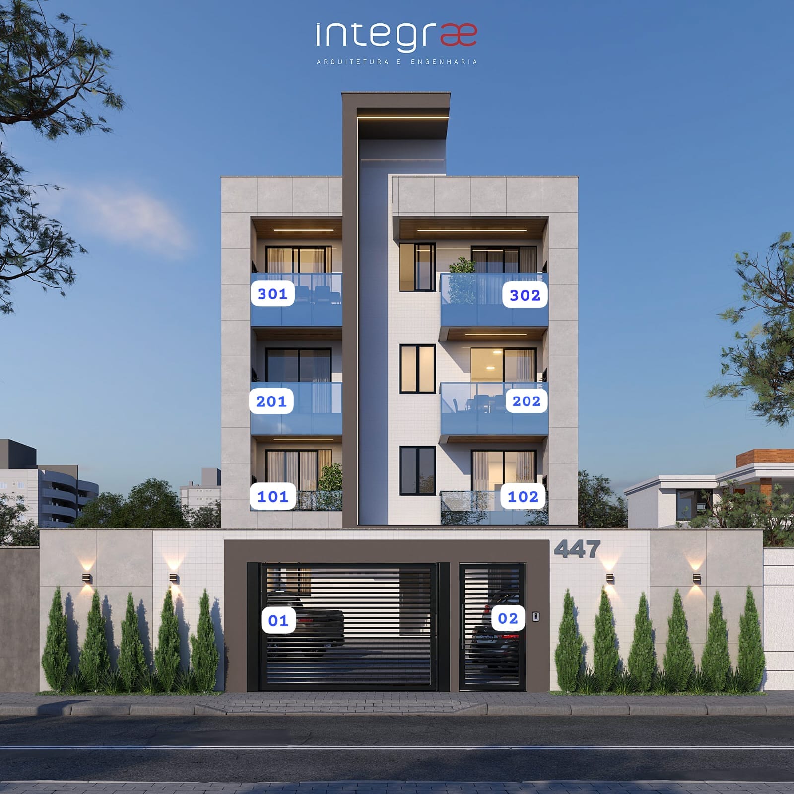📐 65 m² – Apartamentos tipo (1º ao 3º pavimento)