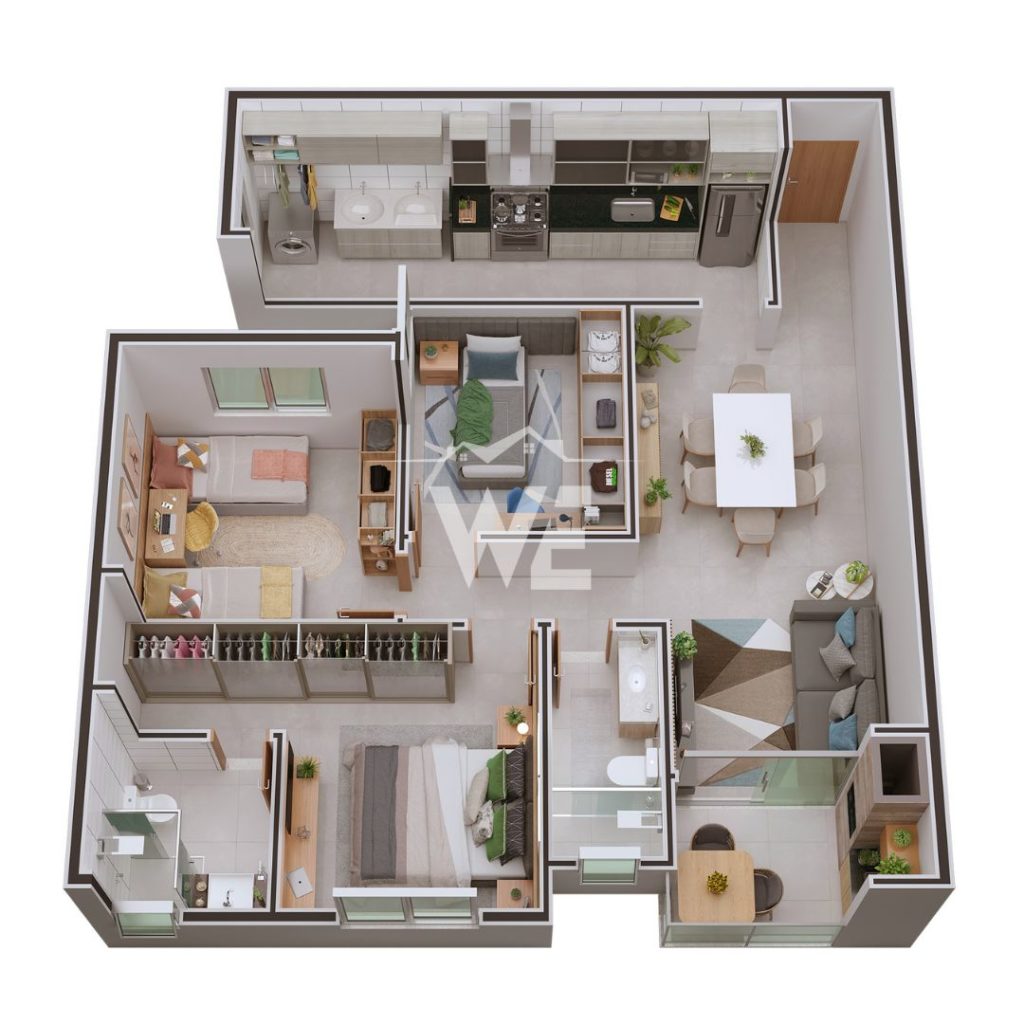 02 ou 3 quartos sendo 1 suíte;